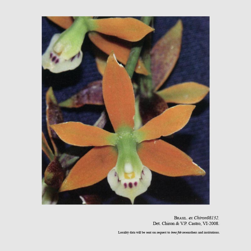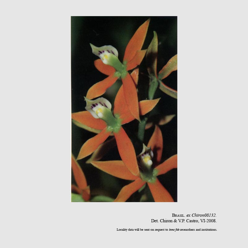 References W3 Tropicos, Kew Monocot list ; IPNI ; Lankester's Epidendra Website CR ; *Richardiana 8(3): 106-109 Chiron & V.P.Castro 2008; Orchidees Du Bresil As Orchideas da Serra Do Castello Vol 3 Chiron & Bolsanello 2013 drawing fide/photo fide