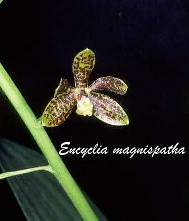Synonyms Encyclia magnispatha (Ames, F.T. Hubb. & C. Schweinf.) Dressler 1961; *Epidendrum magnispathum Ames, F.T. Hubb. & C. Schweinf. 1934; Pseudencyclia magnispatha (Ames, F.T.Hubb. & C.Schweinf.) V.P.Castro & Chiron, Richardiana 4: 33 (2003