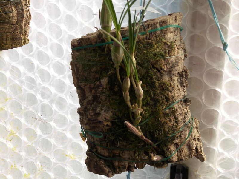 Found in the "Chapada Diamantina" area of Bahia state Brazil with Encyclia kundergraberii at elevations around 700 meters as a small sized, warm to cool growing epiphyte with fusiform elongate pseudobulbs carrying 4 to 6 leaves and blooms in the later winter on a terminal, erect, 38" [80 cm] long, successively single flowered inflorescence carrying sweetly fragrant flowers