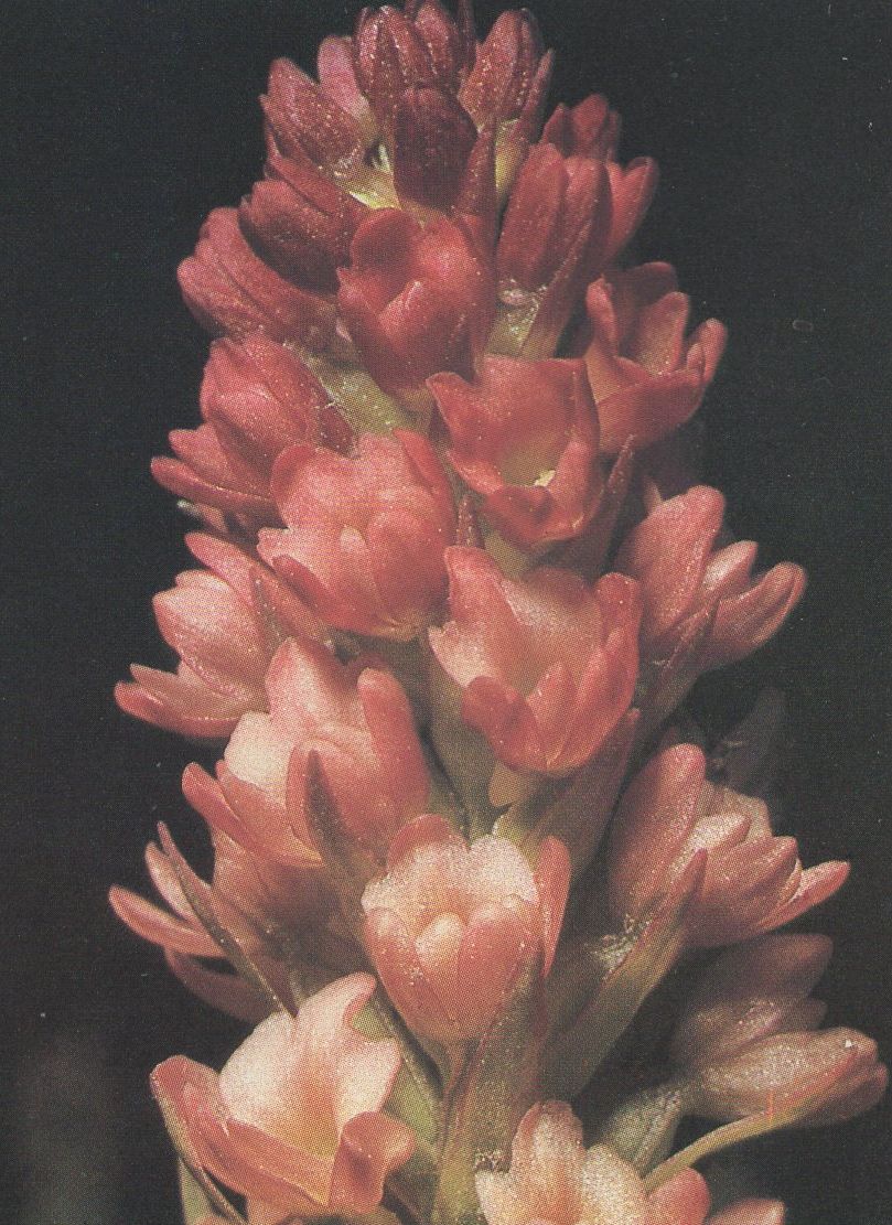 Found in Switzerland as a cold growing terrestrial that is a natural hybrid between Gymnadenia miniata and Pseudorchis albida and blooms in the summer