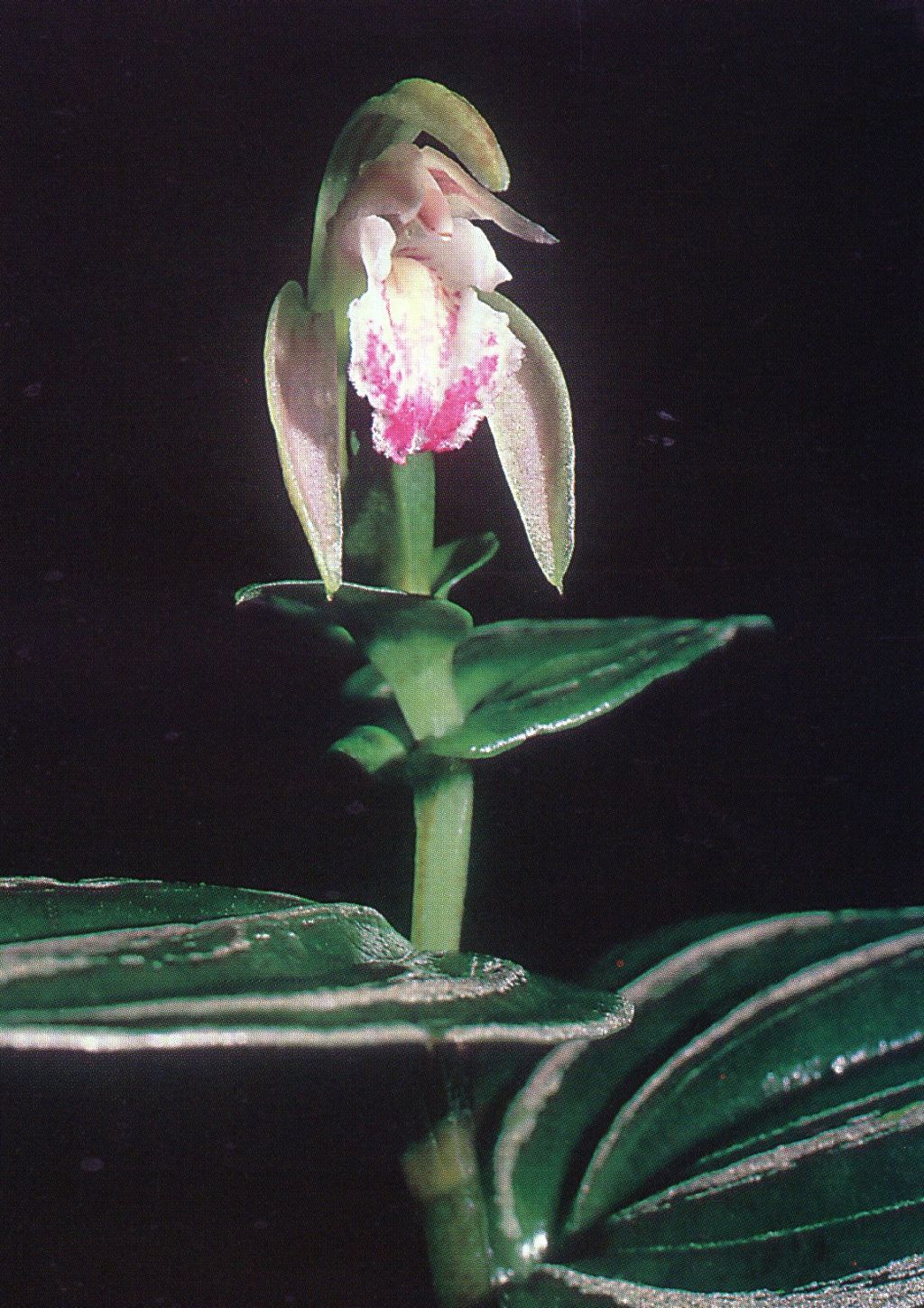 Found in Costa Rica, Panama and Colombia at elevations of 800 to 1500 meters as a small to medium sized, warm to cool growing terrestrial orchid with 4, dark shiny green leaves with pale green striped, ovate-elliptic, acute to subacuminate, petiolate base leaves leaves that blooms in the summer on a terminal, rachis 2.4" [6 cm] long, erect, racemose successviely few flowered inflorescence.