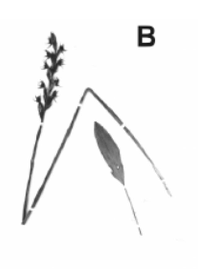 Found in Ecuador in montane forests and scrub paramo at elevations around 3150 meters as a medium sized, cold growing terrestrial that is leafless at blooming in the winter and spring on an erect, terminal, glandular in the upper third, peduncle 12.8 to 16.8" [31.5 to 41.5 cm] long, provided with 7, acute, upper ones glandular-ciliate tubular sheaths, densely ciliate, 16 to 22" [40 to 55 cm] long overall, rachis to 3.4" [8.5 cm] long, several flowered inflorescence with pubescent, ovate, ovate, cucullate, externally debnsely ciliate, longer than the ovary floral bracts and carrying flowers with externally olive-green, petals and internal part of sepals orange-red, lip orange red ?ushed with violet in basal part of lip middle lobe, sepals externally densely glandular-ciliate.