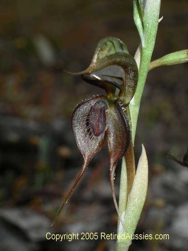 Found in Victoria State Australia at elevations of 80 to 160 meters as a miniature sized, cold growing terrestrial with a basal rosette of 6 to 12 leaves that blooms in the early spring in situ on an erect, 2.4 to 10" [6 to 25 cm] long, 1 to 7 flowered inflorescence.