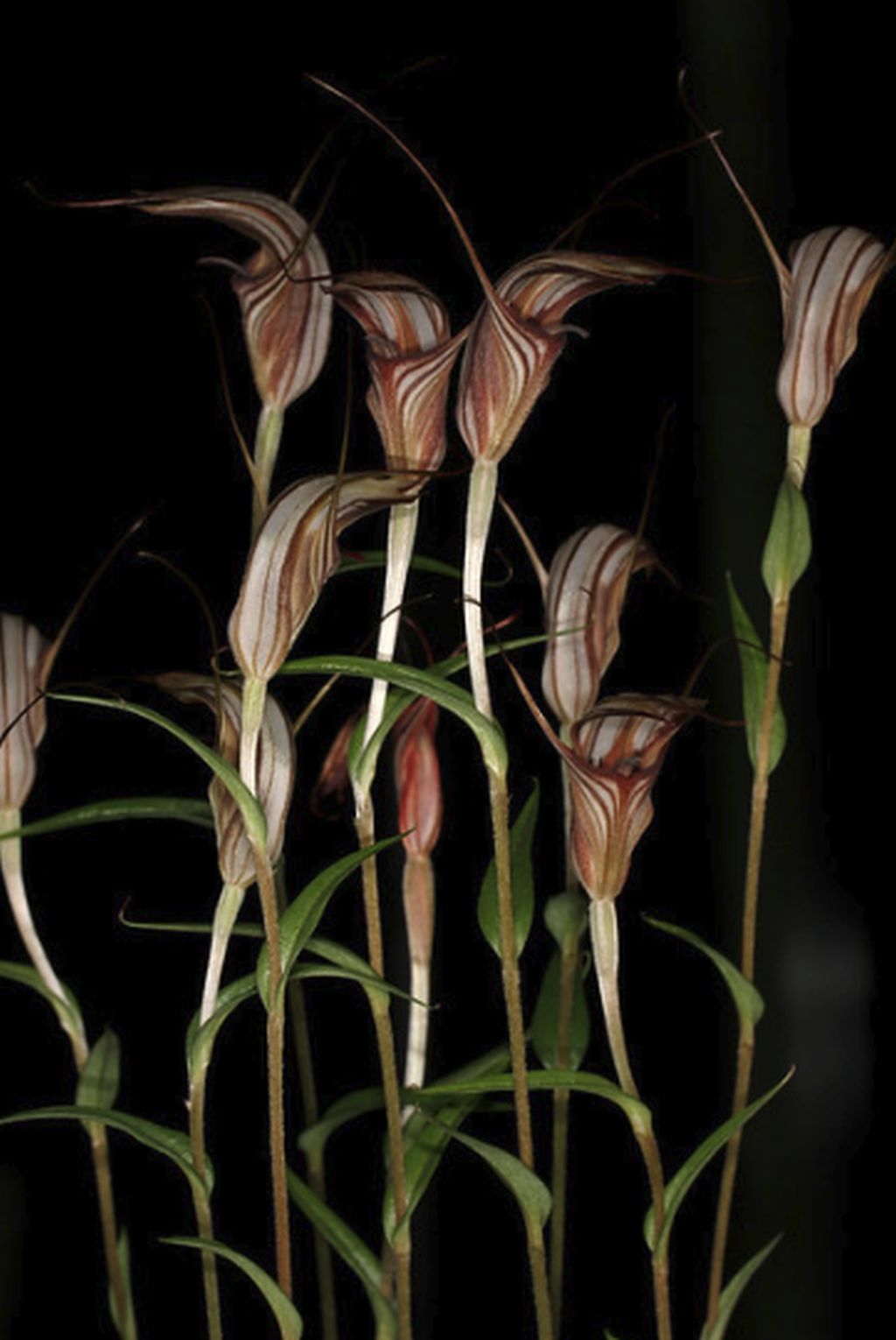 Found in New South Wales and Victoria Australia among grass, shrubs and rocks in tall moist forests at elevations of 700 to 1500 meters as a small sized, cold growing terrestrial with a basal rosette of large, flat, dark green leaves that blooms in the summer and early fall on an erect, 3.2 to 9" [8 to 22.5 cm] long, single flowered inflorescence.