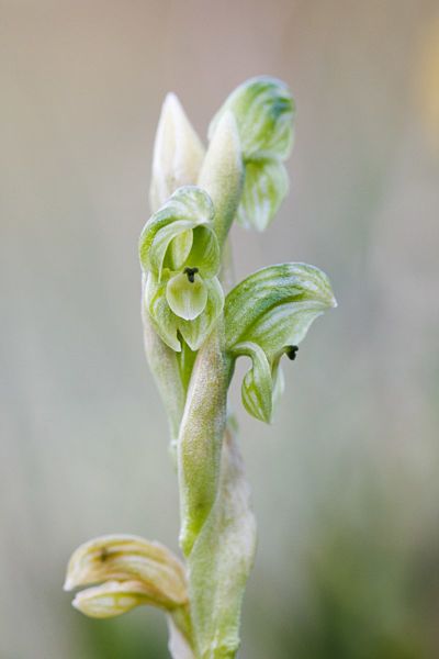 Found in New South Wales Australia in alpine and subalpine grtasslands and herbfields as a small sized, cold growing terrestrial with 4 to 6, loosely sheathing stem leaves and 5 to 8, elliptic to obovate, shortly petioalte to sessile leaves that blooms in the late spring and early summer on an erect, to 12" [to 30 cm] long, 5 to 18 flowered inflorescence.