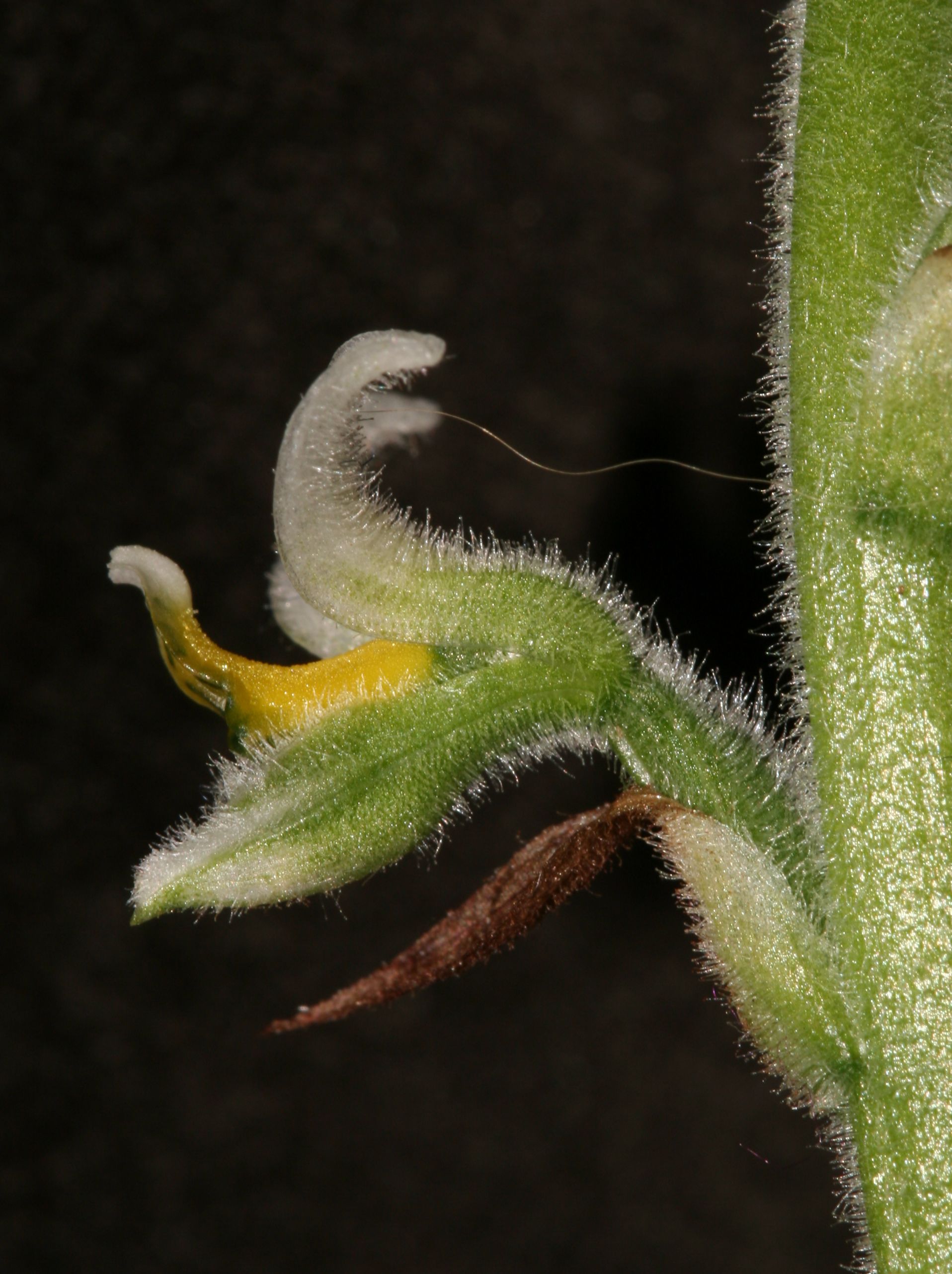 Found in Ecuador where it blooms in the fall on a terminal, erect, many flowered inflorescnece