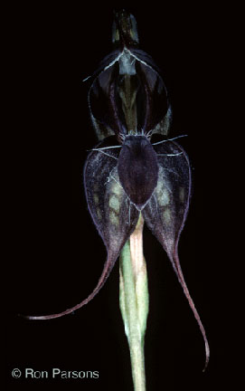 Found in New South Wales Australia at elevations of 200 to 350 meters in drier open forests among low shrubs as a small sized, cold growing terrestrial with a basal rosette of 6 to 9 leaves that blooms in the spring on an erect, 6 to 14" [15 to 35 cm] long, 1 to 10 flowered inflorescence