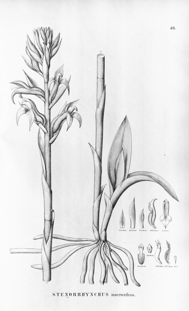 Synonyms Gyrostachys macrantha (Rchb.f.) Kuntze 1891; Spiranthes albescens Barb.Rodr. 1877; Spiranthes macrantha Rchb.f. 1846; Stenorrhynchos albescens Barb.Rodr. 1877; Stenorrhynchos macranthum (Rchb.f.) Cogn. 1895; Stenorrhynchos macranthum f. multiflorum Cogn. 1903; Stenorrhynchos macranthum f. robustior Cogn. 1903