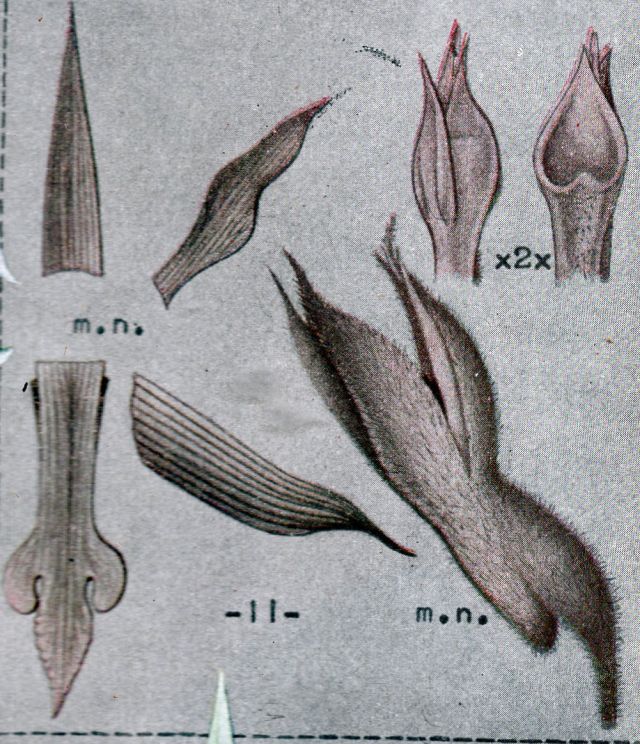 Found in northeastern Argentina at elevations below 500 meters as a large sized, cool growing terrestrial with an erect, sparsely leafed stem carrying towards the base, short, obovate, the median ones, oblong, obtuse to rounded apically, white margined, and the superior leaves grading to bract-like leaves that blooms on a terminal, to 4.8" [12 cm] long, glandular-pilose, to 10 flowered inflorescence with large, lanceolate, acuminate, bracts that are almost as long as the flowers.