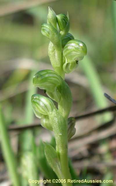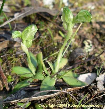 Found in Queensland, New South Wales and Victoria, at elevations of 50 to 800 meters where it favours grassland, grassy forest and woodland in well drained soils and is a miniature sized, cold to cool growing terrestrial orchid with a 6 to 12, ground hugging elliptical, dark green, marginally flat leaves that blooms in the late winter through the early summer on a terminal, erect, 4" [10 cm] tall, racemose inflorescence with several [2 to 20] flowers.