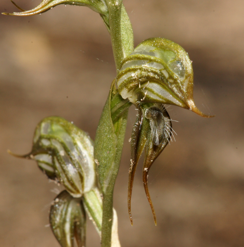 Pterostylis picta M.A.Clem. 1989 SECTION Oligochaetochilus Photo by © Ron and Beth Kinsey and their Flickr Orchid Photo Website