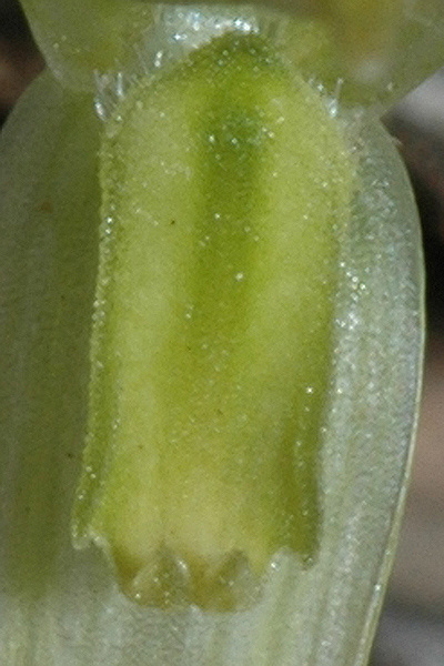 Found in New South Wales Australia among shrubs and tussocks in heathy forests at elevations of 400 to 600 meters as a miniature to medium sized, cold growing terrestrial with a rosette stem carrying 3 to 5, margins entire to crinkled leaves that blooms in the winter and spring on an erect, 4 to 14" [10 to 35 cm] long, 1 to 6 flowered inflorescence carrying 4 to 8 leaves