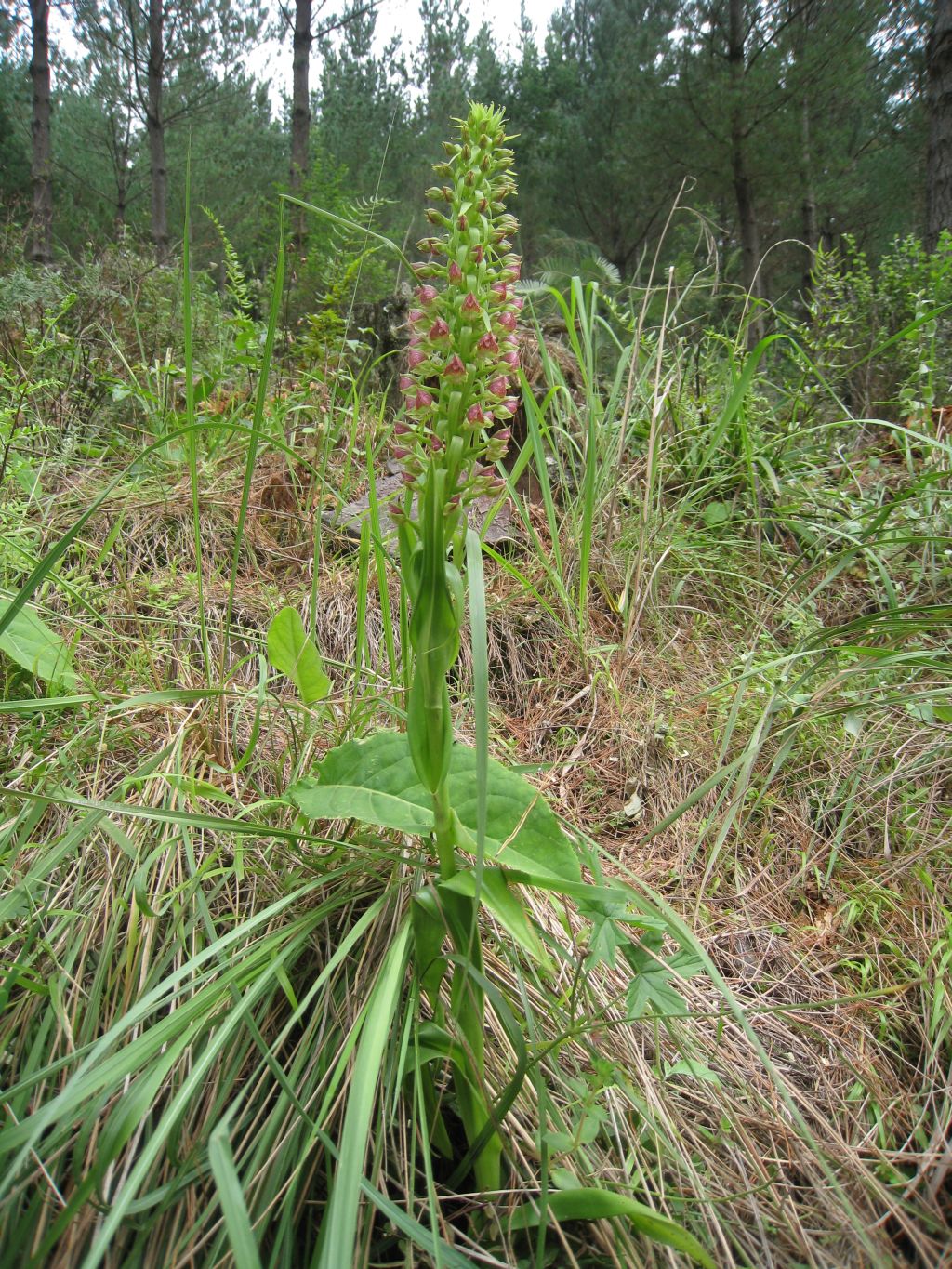 Found in Cape Province, Natal Orange Free State and Transvaal South Africa in marshy grasslands at elevations of 900 to 2200 meters as a giant sized, cold growing terrestrial orchid with numerous, cauline, oblong-lanceolate leaves grading into obvious floral bracts that blooms in the summer on an erect, terminal, densely many [45 to 100] flowered inflorescence
