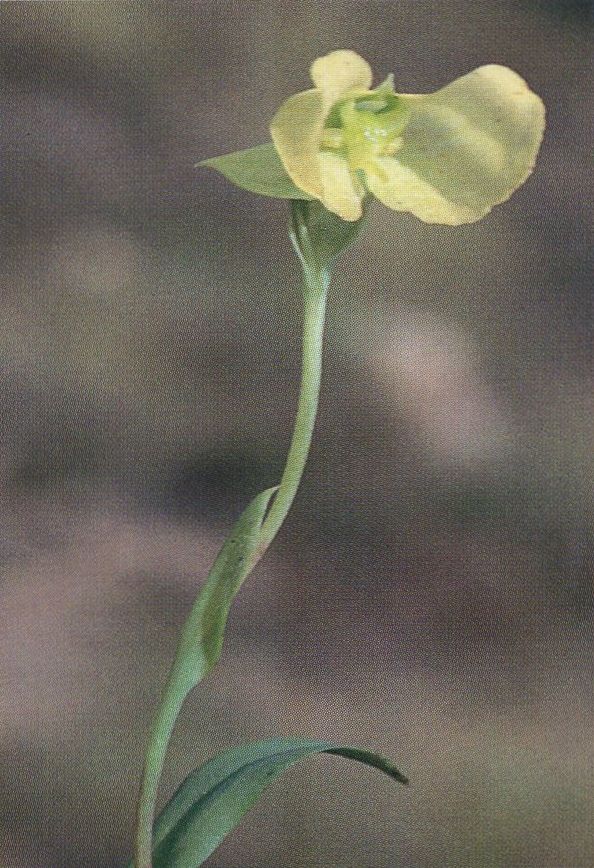 Found in southwestern Cape Province, South Africa in grasslands and on montane slopes at elevations of 540 to 1500 meters as a smalol sized, cold growing terrestrial with 2 narrowly elliptic, acuminate to subapiculate leaves that blooms in the winter often after fires, on an erect, terminal, lax, 1 to 2 flowered inflorescence with ovate, acute floral bracts