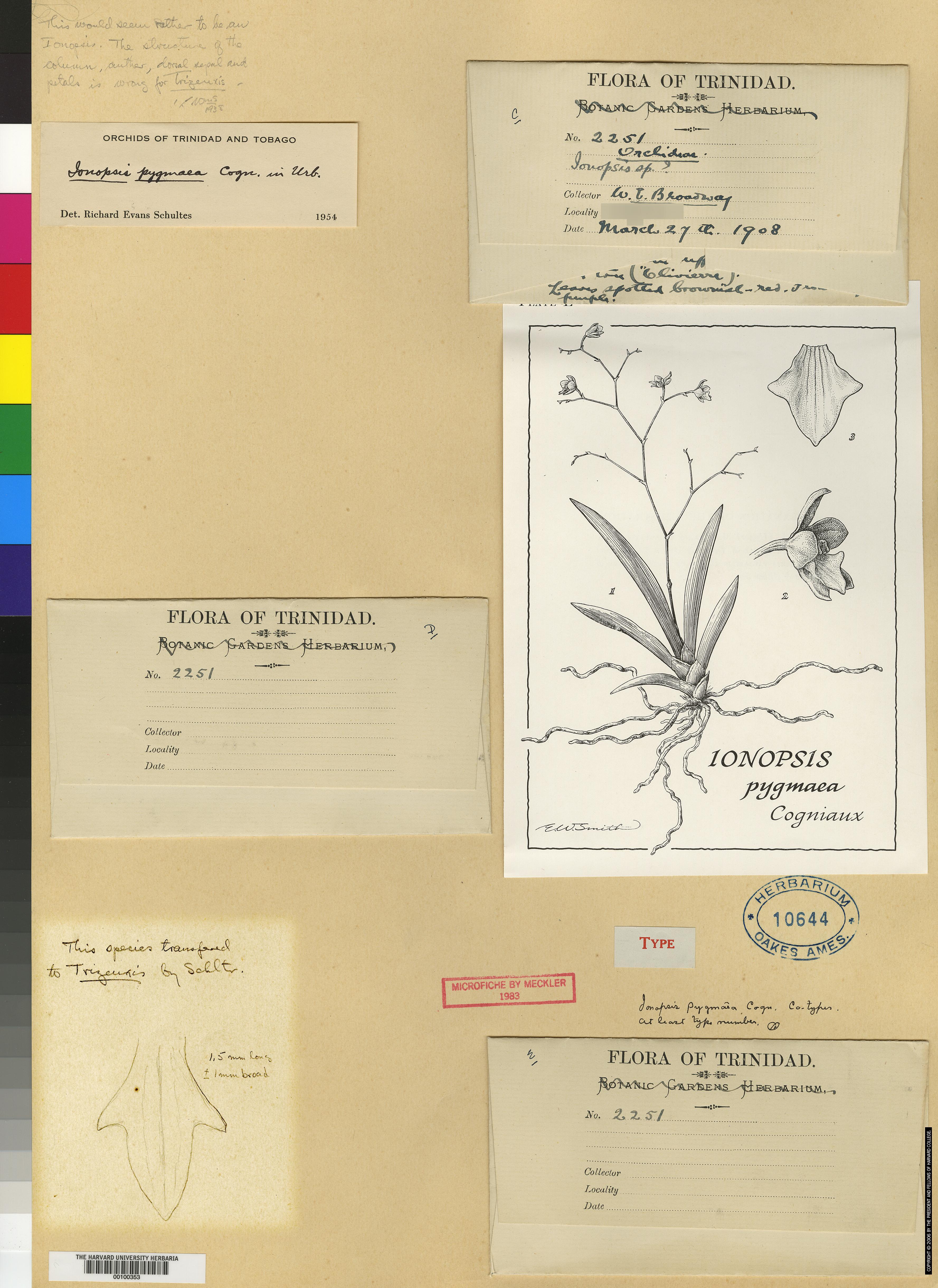 Synonyms *Ionopsis pygmaea Cogn. 1910; Stictophyllorchis pygmaea (Cogn.) Dodson & Carnevalli 1993; Stictophyllum pygmaeum (Cogn.) Dodson & M.W.Chase 1989; Trizeuxis pygmaea (Cogn.) Schltr. 1913