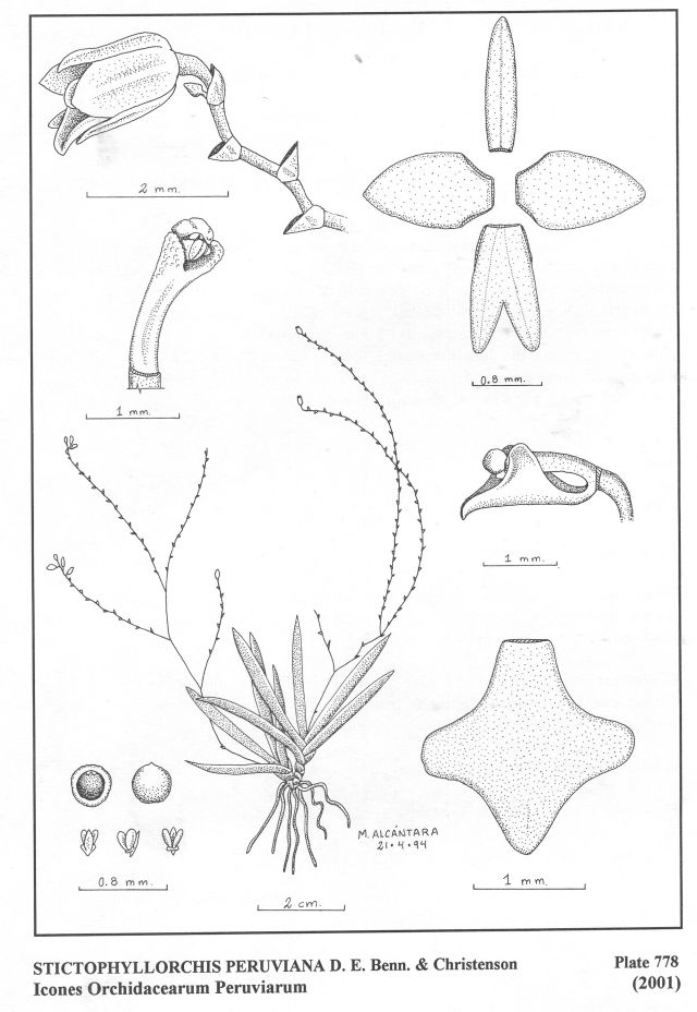 References W3 Tropicos, Kew Monocot list , IPNI ; *Icones Orchidaceaerum Peruviarum Plate 778 Bennett & Christenson 2001 as Stictophyllorchis peruviana drawing fide; Rudolf Schlechter Die Orchideen Band 1C lieferung 44-45 pg 2763 - 2898 Brieger 2001