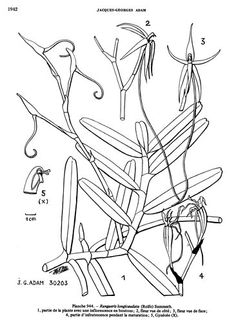Found in Ivory Coast, Liberia, Nigeria, Cameroon and Gabon on large branches of big trees in evergreen or semi-deciduous forests at lower elevations as a small sized, hot to warm growing epiphyte with erect, elongate stems carrying 2 rows of ligulate to lorate, unequally, rounded lobed apically, basally clasping leaves taht blooms in the fall on a lateral, , opposite the base of a leaf, erect to sub-erect, with large, dark brown bracts4.8 to 8" [12 to 20 cm] long, 3 to 8 flowered inflorescence with floral bracts that enveloped the base of the pedicel and carry white flowers.