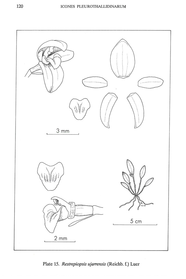 References W3 Tropicos, Kew Monocot list , IPNI Venezuelan Orchids Illustrated Vol 4 Dunsterville & Garay 1966 as Restrepiella ujarensis; Icones Planetarum Tropicarum Plate 1146 Hamer 1984 as Restrepiella ujarensis drawing fide; Icones Pleurothallidinarum VIII Systematics of Lepanthopsis, Octomeria subgenus Pleurothallopsis, Restrepiella, Salpistele and Teagueia Luer 1991 as Restrepiella ujarensis drawing fide; Guatemala Y Sus Orquideas Behar & Tinschert 1998 as Restrepiopsis ujarrensis photo fide; Rudolf Schlechter Die Orchideen Band 1C lieferung 42-43 pg 2624 - 2756 Brieger 2001 as Restrepiopsis ujarrensis drawing fide; Manual de Plantas de Costa Rica Vol 3 Hammel, Grayum, Herrera and Zamora 2003 as Restrepiopsis ujarrensis; Orchid Genera and Species in Guatemala Archila, Szlachchetko, Chiron, Lipinska, Mystkowska and Bertolini 2018; Vanishing Beauty, Native Costa Rican Orchids Vol 2 Lacaena to Pteroglossa Pupulin 2020 photo fide