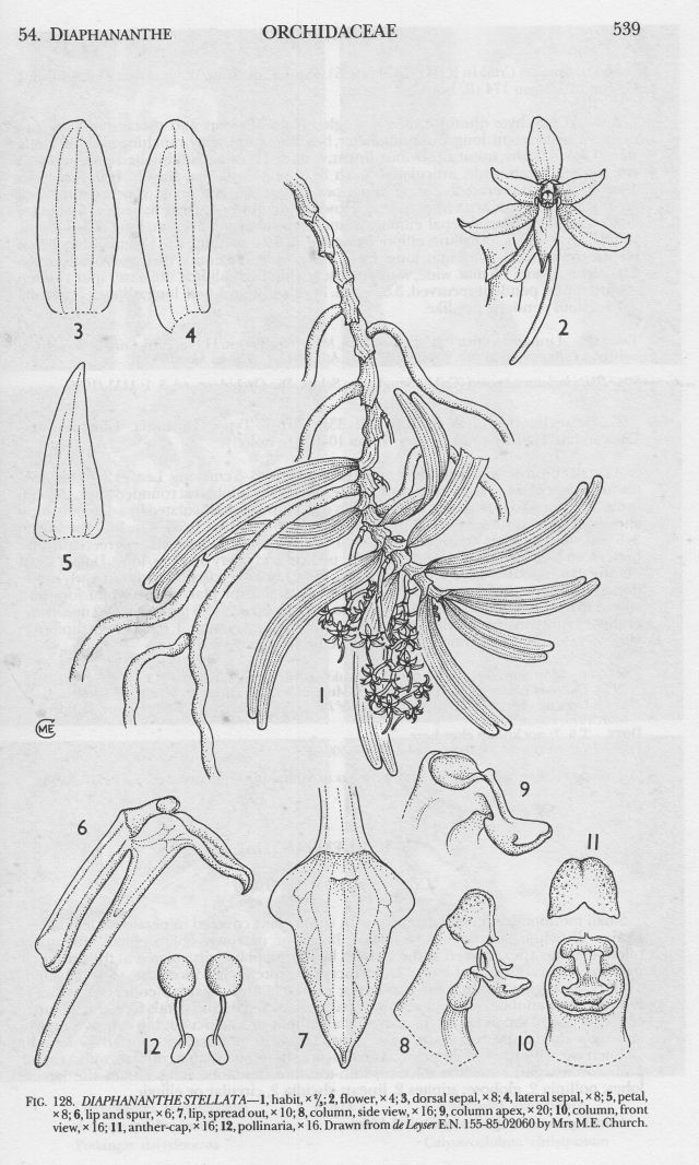 References W3 Tropicos, Kew Monocot list , IPNI ; Flora of Tropical East Africa Part 3 Cribb 1989 as Diaphananthe stellata Drawing fide; Rudolf Schlechter Die Orchideen Band 1C lieferung 42 - 43 pg 2626 - 2762 Brieger 2001; Angraecoid Orchids Stewart, Hermans and Campbell 2006