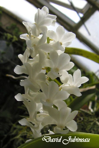Rhynchostylis coelestis var alba Photo courtesy of David Jubineau Copyright ©