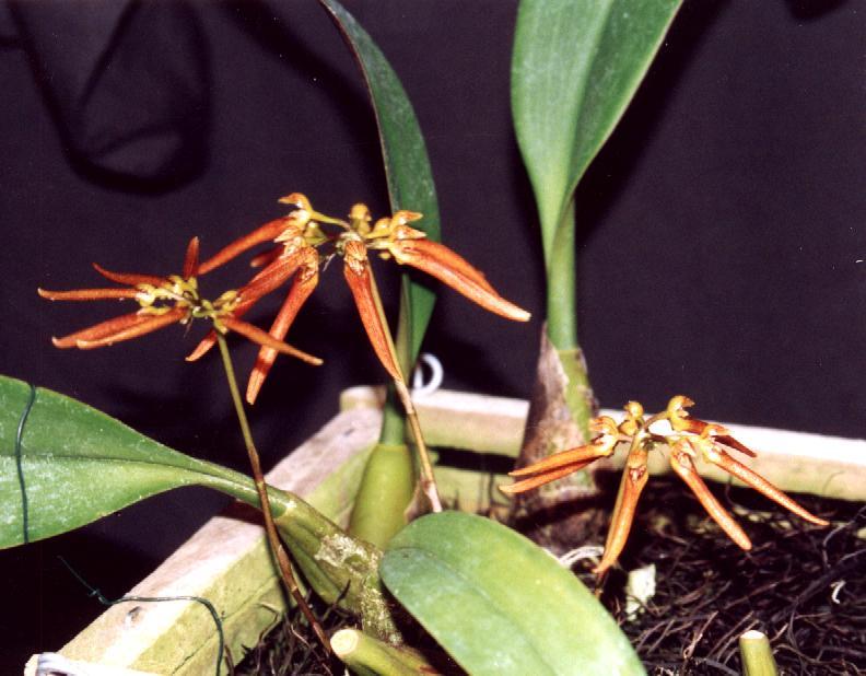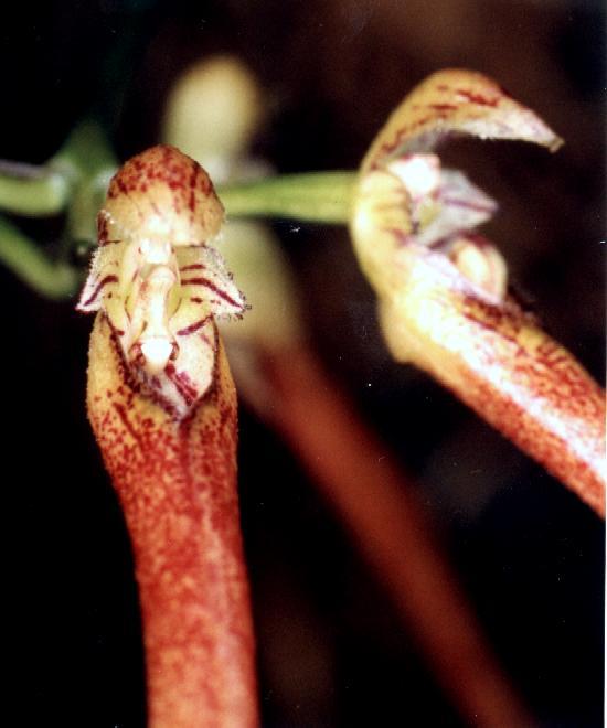 Found in southern India at elevations around 1300 meters as a small sized, cool growing epiphyte that blooms in the spring on an erect, 4" [10 cm] long, 6 to 7 flowered inflorescence holding the few flowers in an umbel over the leaf.