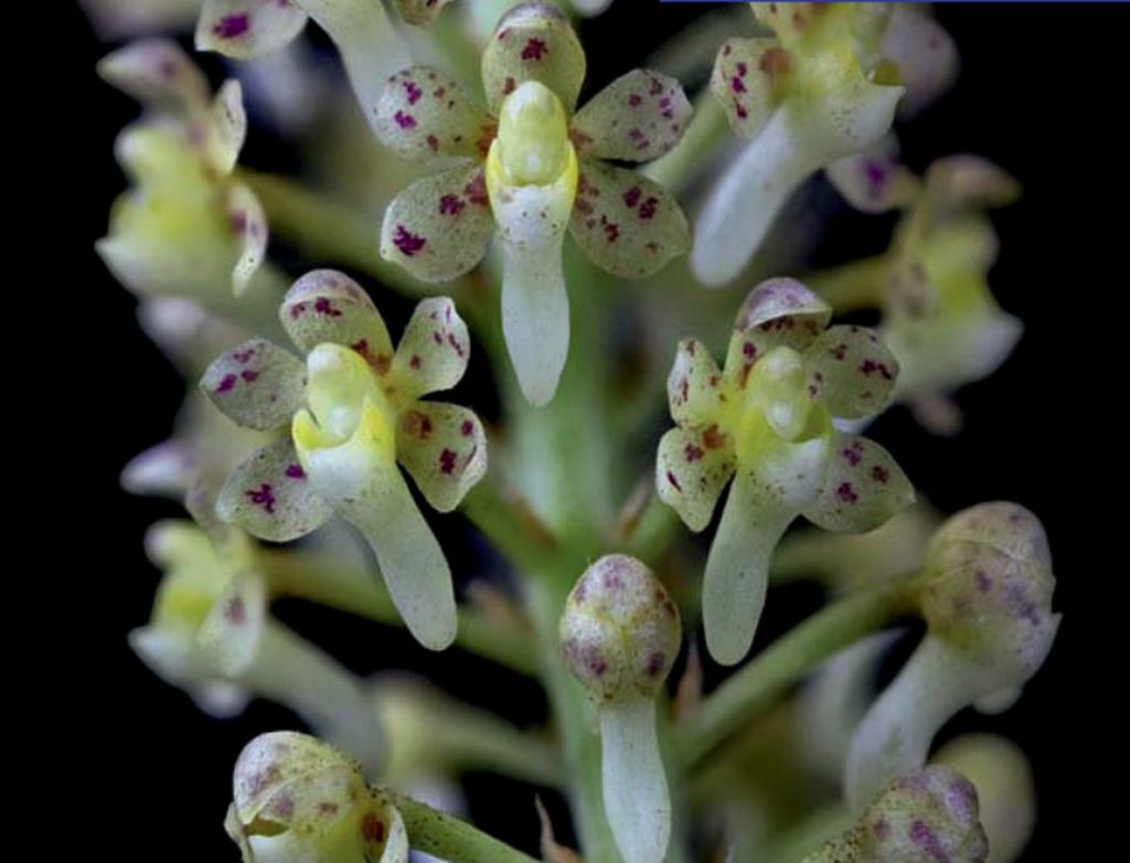 Common Name The Small Bottle Carrying Robiquetia [refers to the shape of the whole labellum including the spur which resembles a small jar or bottle]