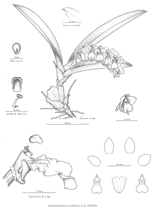 Rodriguezia luteola N.E.Br. 1883 Drawing by © Dunsterville & Garay and Ven. Orchids Illus. Vol 5 1966