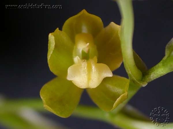 Found in Sao Paulo state of Brazil on scrub on high mountain ridges as a miniature to small sized, cool growing epiphtye with light green, laterally compressed ovoid pseudobulbs and carrying 2, apical, narrow, acute, deeply keeled, ovate, stiff leaves that blooms in the winter and spring on 2, axillary, 7.2" [18 cm] long, to 12 flowered inflorescence
