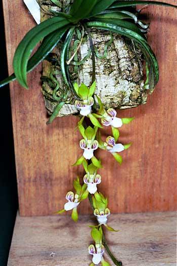 Found in New South Wales and Victoria Australia, as well as Tasmania, at elevations sea level to 1000 meters in fern gullies adn gorges and on stream banks in rainforests as a miniature sized, pendant to porrect, cool growing epiphyte with a short, monopodial stem carrying to 15, normally less, linear to falcate, coriaceous, slightly twisted leaves that blooms in the spring with 2 to 15, fragrant flowers on a pendulous, to 4" [10 cm] long, racemose inflorescence.