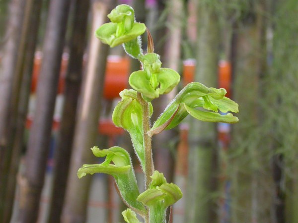 Found in Brazil at elevations around 1200 to 1500 meters as a small sized, cool growing terrestrial with an erect stem enveloped by lanceolate, inflated, acute bracts that blooms in the spring on an erect, 4" [10 cm] long, several flowered inflorescence with broadly lanceolate, acute, as long as the flower floral bracts.