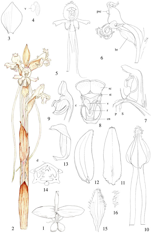 Satyrium mirum Summerh. 1966 Drawing by © John Ball and The Swiss Orchid Foundation at the Jany Renz Herbaria Website