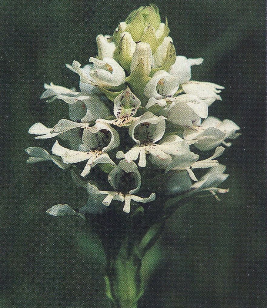 Found in Zaire, Kenya, Angola, Malawi, Zambia and Zimbabwe in grasslands and swamps at elevations around 2400 to 2500 meters as a medium to large sized, cold growing terrestrial with 2 ellipsoid, tomentose tubers giving rise to an erect, slender to stout stem carrying 5 to 11, the lowest 2 to 3 sheathlke, the remainder, suberect, lanceolate, acute, progressively smaller above leaves that blooms in the later spring on an erect, more or less pyrimidical, .8 to 2.8" [2 to 7 cm] long, densely many flowered inflorescence with spreading, lanceolate, slightly ribbed, acute, much longer than the flower floral bracts and carrying pure white flowers.