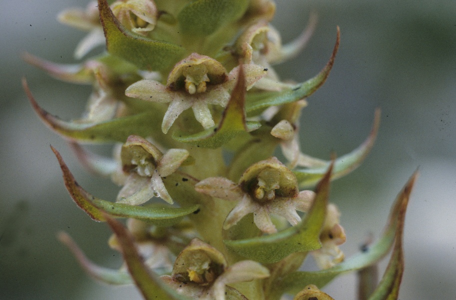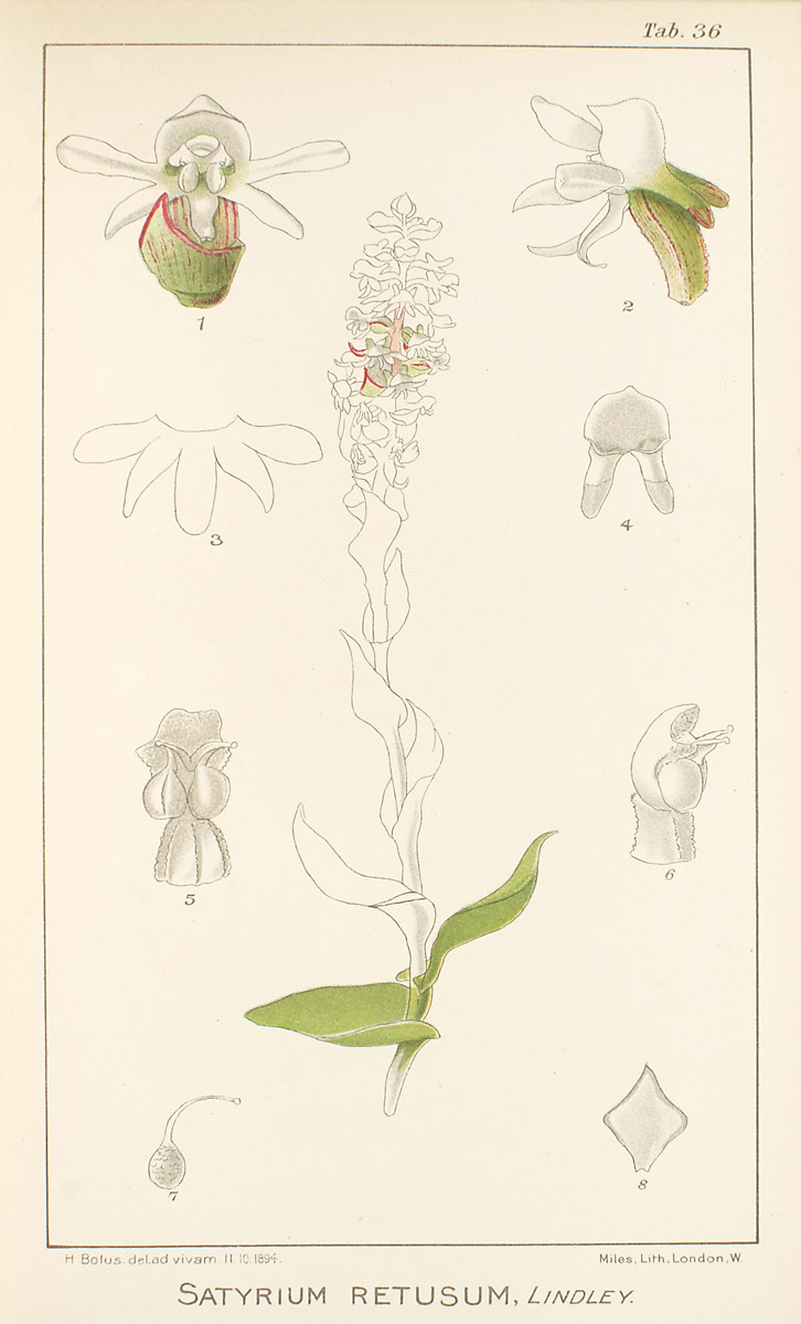 Satyrium retusum Lindl.1838 SUBGENUS Brachysaccium [Schltr] Kurzweil & Linder 1999 Photo by © Peter Linder and The Swiss Orchid Foundation at the Jany Renz Herbaria Website