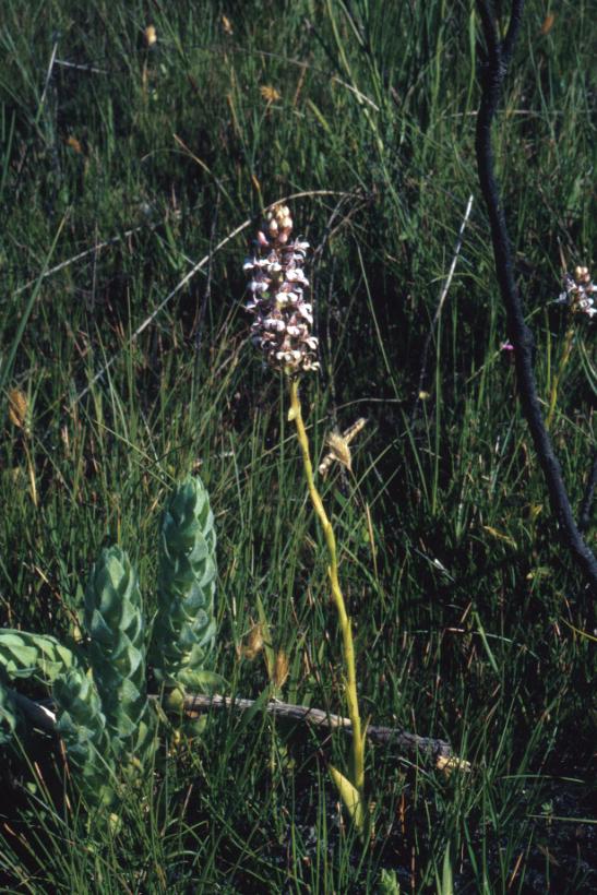 Found in southwestern South Africa in fynbos, marshes and on moist slopes at elevations of 300 to 1000 meters as a small to medium szied, cool to cold growing terrestrial with 2 to 6, partly erect, narrow leaves that gradually transitioning into the several sheathing leaves above that blooms in the spring on an erect, terminal, [4 to 12 cm] long, 10 to 40 flowered inflorescence carrying sweetly pungent scented flowers