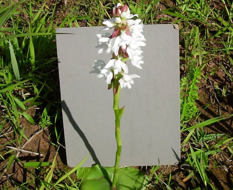 Found in Nigeria, Cameroon, Zaire, Rwanda, Burundi, Uganda, Kenya, Tanzania, Malawi and Zambia in Brachystegia woodlands and open seasonally flooded grasslands at elevations of 1200 to 2300 meters as a medium to large sized, cool to cold growing terrestrial with ovoid to ellipsoid tomentose tubers giving rise to an erect, enveloped by 4 sheaths and carrying 2 basal, adpressed to the ground, ovate, orbicular to reniform, fleshy, leaves that blooms in the late spring through summer on a terminal, erect, 1.6 to 6.4" [4 to 16 cm] long, fairly densely few to 20 flowered inflorescence carrying fragrant flowers .