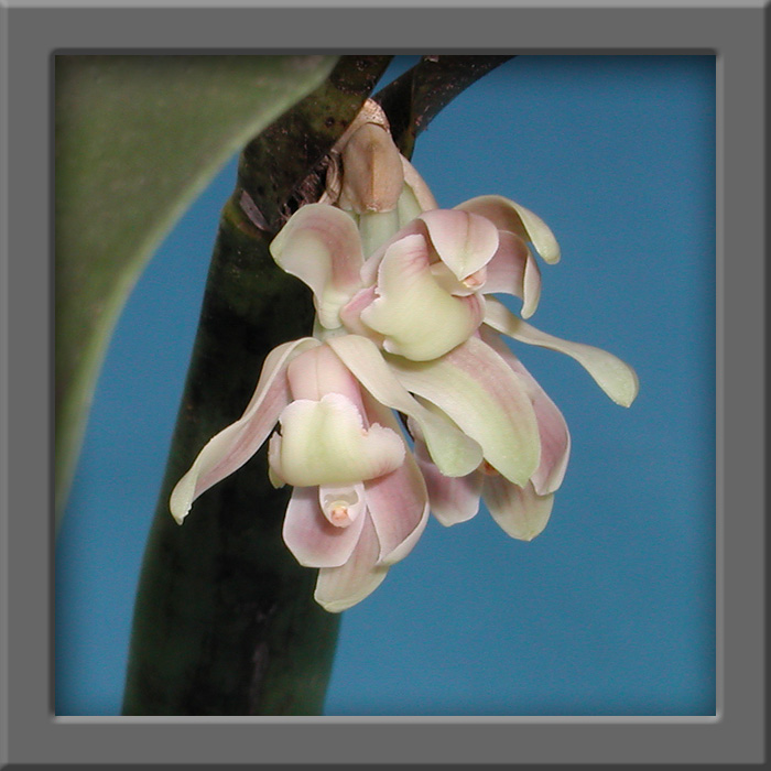 Found from Costa Rica, Ecuador, Fr Guiana and Surinam in rain forests at elevations of 400 to 2200 meters as a small to medium sized, cool to warm growing epiphyte with an ascending, apical half swollen into cylindric fusiform, slightly laterally compressed, basally terete pseudobulbs enveloped basally by several evanescent sheaths and carrying 2 apical, coriaceous, elliptic, acuiminate gradually narrows below into the conduplicate base leaf that blooms in the late summer on a very short, terminal, successively few flowered racemose inflorescence and may be with maturing fruit.