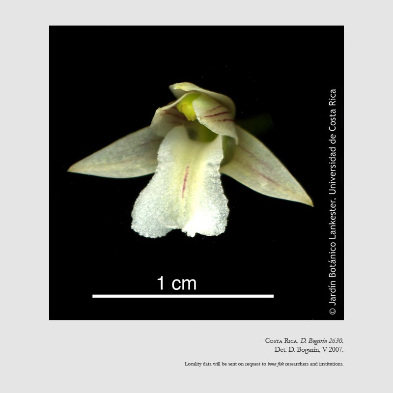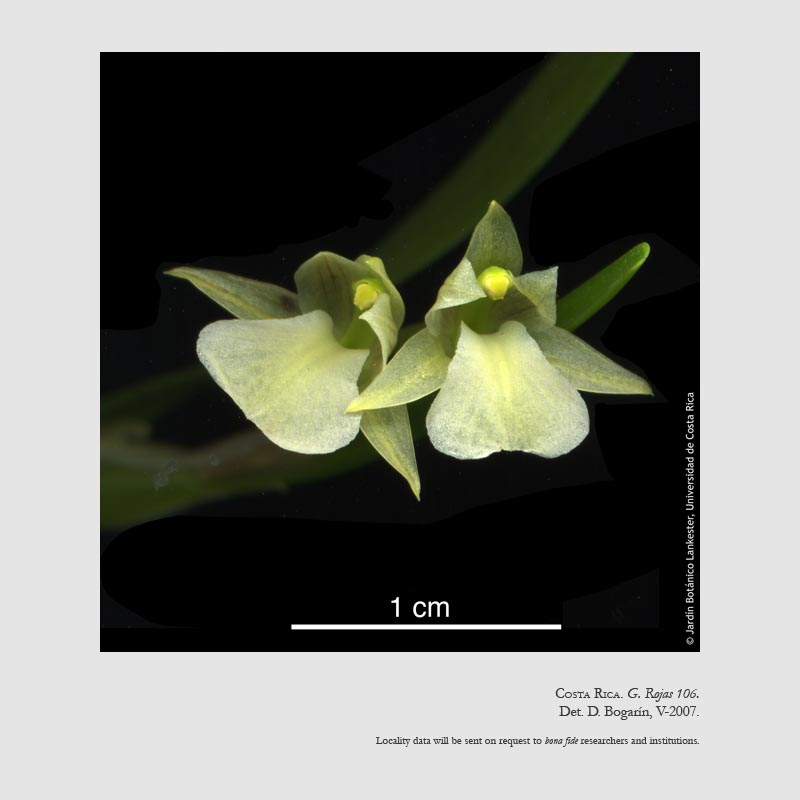 Found in Guatemala, Costa Rica, Panama, Trinidad and Tobago, French Guiana, Surinam, Guyana, Venezuela, Colombia, Peru, Bolivia? and Brazil as a small sized, hot to cool growing epiphyte in wet montane and cloud forests at elevations of 100 to 1800 meters with fusiform, with long stipitate bases, slender, sulcate, acute stems with 2 to 3 basal, scarious bracts carrying a single, apical, linear, acute leaf that has a subsessile inflorescence with several, distichous, imbricating, scarious bracts and the floral bract exceeds the ovary in length and single apical, campanulate, nodding flowers and can bloom at any time of the year.