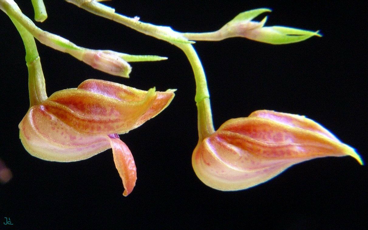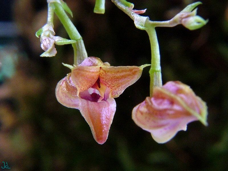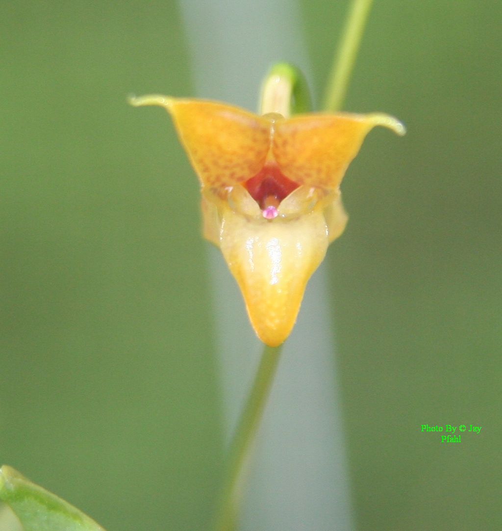 Found in Colombia and Ecuador at elevations of 1750 to 2400 as a miniature sized, cool to cold growing epiphyte with erect, slender ramicauls enveloped by 2 to 3 tubular sheaths carrying a single, apical, erect, thinly coriaceous, elliptical, acute leaf narrowly cuneate below into the long, conduplicate petiole that blooms in the fall, winter and spring on a erect to descending, subcongested, distichous, successively several flowered, to 8" [to 20 cm] long, racemose inflorecense arising from low on the ramicaul and with narrowly triangular, oblique, conduplicate floral bracts.