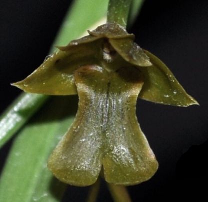 Found in Quetztenango department of Guatemala in cloud forests at elevations around 1600 meters as a subpendent, small sized, cool growing epiphyte with simple, basally thin, becoming cylindrical-fusiform, tapering above green becoming washed out with age pseudobulbs enveloped basally by tightly adpressed, white beacts with reddish coffee colored dots carrying 2, apical, narrowly linear, single nerved, imperceptably tridentate apically leaves that blooms in the late fall and early winter on a terminal, .88 to 2.6" [2.2 to 6.5 cm] long, few flowered inflorescence carrying olive green flowers.