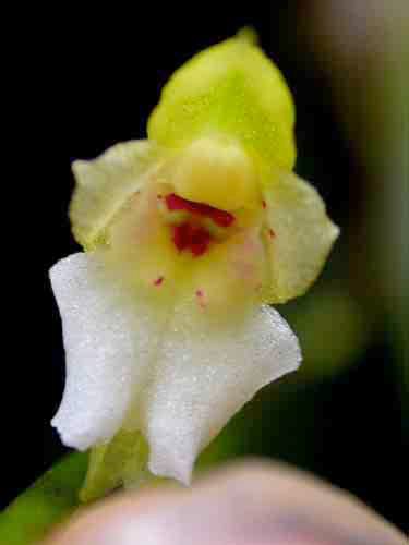 Found in Ecuador in wet montane cloud forests at elevations of 2000 to 2700 meters as a small sized, cold growing epiphyte with a short stem completely enveloped by imbricate leafless and leafbearing sheaths each carrying a single, narrowly elliptic, acute, gradually narrowing below to the articulate base leaf and blooms in the fall and winter on an axillary, 4" [10 cm] lojng, several flowered, racmose inflorescence with successive opening flowers