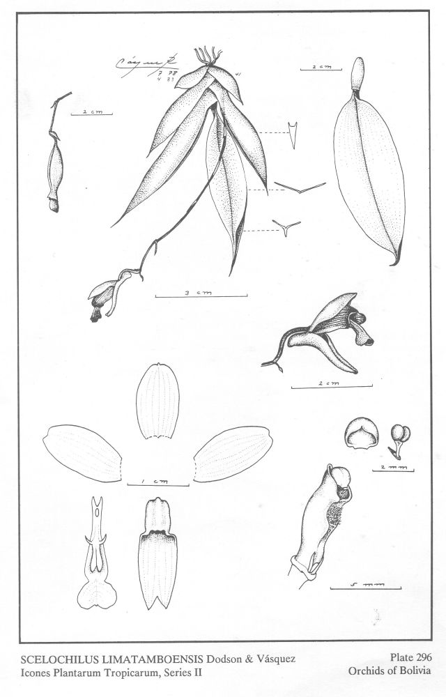Scelochilus limatamboensis Dodson & R.Vásquez 1989 TYPE Drawing by Dodson & Vasquez