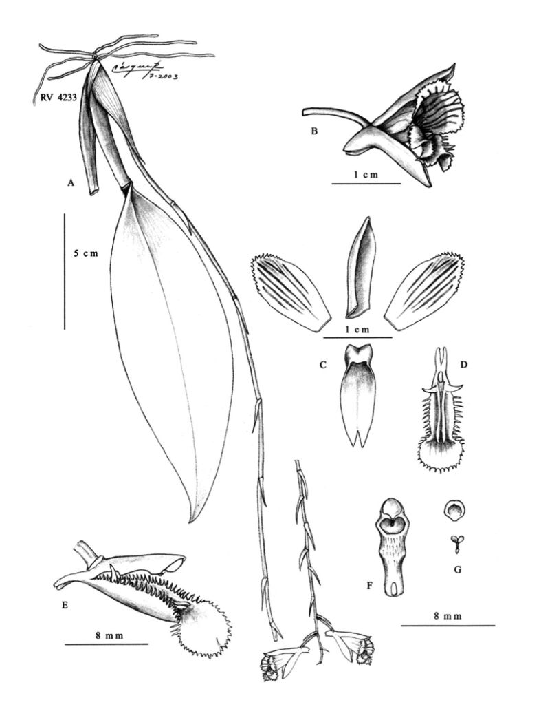 References W3 Tropicos, Kew Monocot list , IPNI ; *Revista Soc. Boliv. Bot. 4(1): 35–36, f. 3. 2003 Vasquez & Dodson drawing fide; AOS Bulletin Vol 77 #12 2008 as Comparettia newyorkora; The Parque Nacional Carrasco, Cochabamba Bolivia, Orquideas del Proyecto Hidroelectrico Ivirizu Website 2021 photo fide;