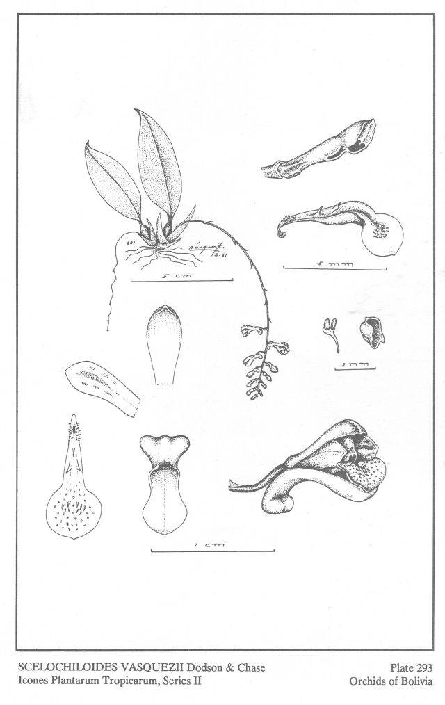 Scelochiloides vasquezii Dodson & M.W.Chase 1989 TYPE Drawing by Dodson & Vasquez