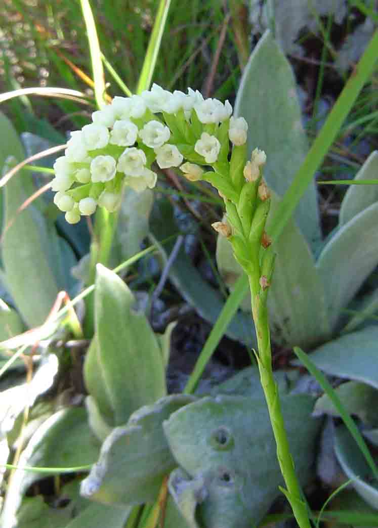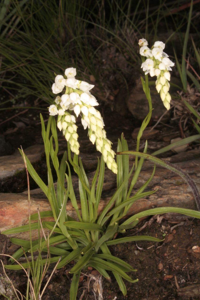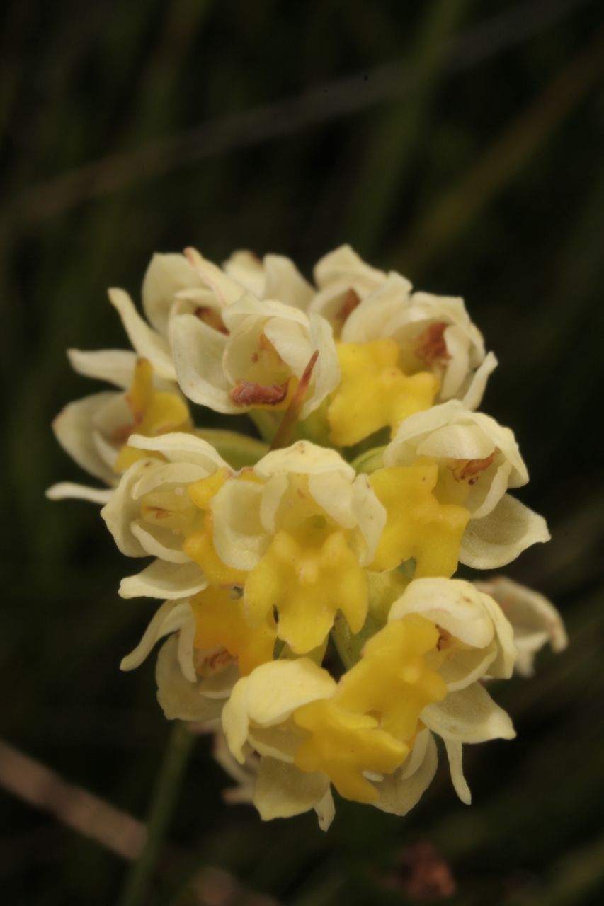A yellow color variety occuring in Swaziland and Transvaal provinces of South Africa on rock ledges, between rocks or on rock faces in high altitude sour grasslands at elevations around 1000 to 2200 meters as a miniature to small sized, cool growing terrestrial with 3 to 6 clustered, linear to oblanceolate leaves and lanceolate cauline leaves that blooms in the summer on a nodding, more or less secund, very densely 20 to 38 flowered inflroescence