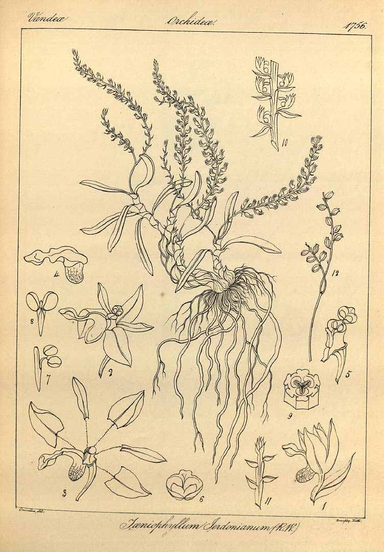 Schoenorchis jerdoniana (Wight) Garay 1972 TYPE Drawing by © Wight and The Plant Illustrations Website