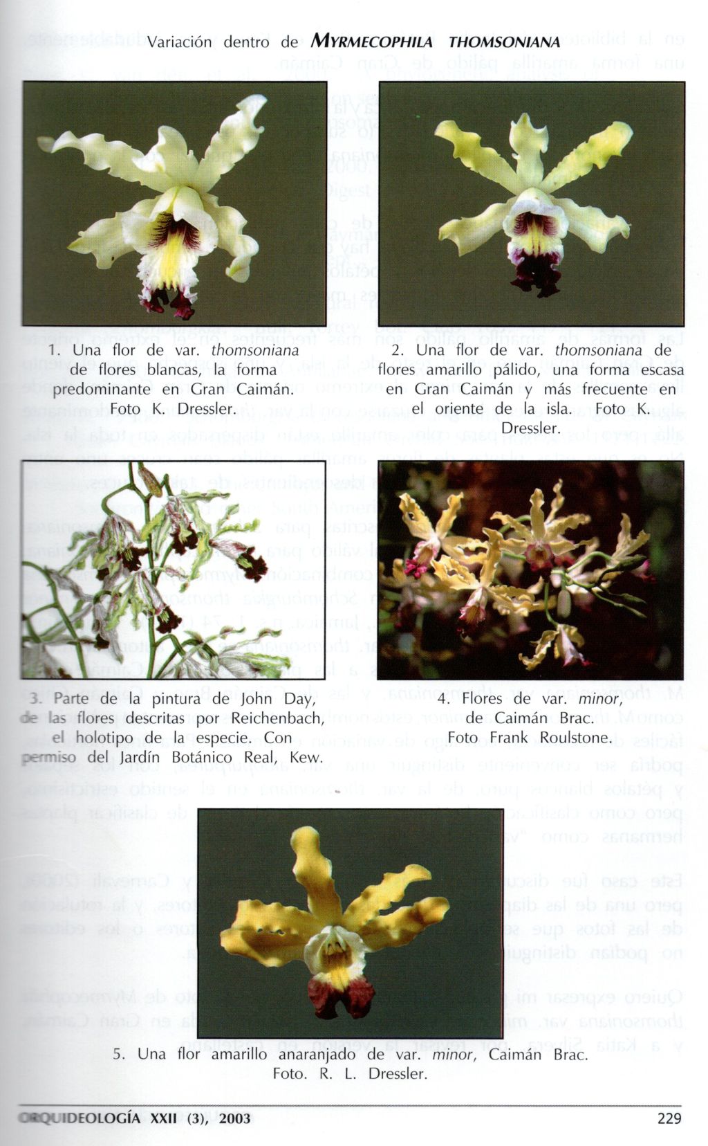 Symbolae Antillanae Vol VI Orchidaceae Urban 1909; Symbolae Antillanae Vol VI Orchidaceae Urban 1909 as S thompsonianus var minor; Die Orchideen Schlechter 1915; Die Orchideen Schlechter 1915 s thompsonianus var minor; AOS Bulletin Vol 28 No 5 1959 as Laelia thompsoniana; Native Orchids of Trinidad Schultes 1960 as Laelia thompsoniana; AOS Bulletin Vol 32 No 1 1963 as S brysiana var thompsoniana; AOS Bulletin Vol 32 No 1 1963 as S brysiana var atropurpurea; AOS Bulletin Vol 32 No 1 1963 as S thompsoniana; Encyclopedia of Cultivated Orchids Hawkes 1965 as laelia thompsoniana; Flora of the Lesser Antilles Garay & Sweet 1974 as Schomburgkia brysiana var minor appendix; Orquideologia Vol 12 3/4 1977/8 as Schomburgkia thompsoniana; AOS Bulletin Vol 49 No 10 1980 photo fide; Cattleyas and Their Relatives Withner Vol 3 1990 photo/drawing fide; Orchid Digest Vol 64 #2 2000 as Schomburgkia thompsoniana photo fide; Rudolf Schlechter Die Orchideen Band 1C lieferung 42 - 43 pg 2626 - 2762 Brieger 2001 as Schomburgkia thompsoniana; Orquideologia Vol 22 #3 2003 photo fide; AOS Bulletin Vol 79 #7 2010 photo fide; Orchid Digest Vol 76 #1 2012 photo fide; AOS Bulletin Vol 85 #9 2016 photo fide; AOS Bulletin Vol 88 #10 2019 photo fide;
