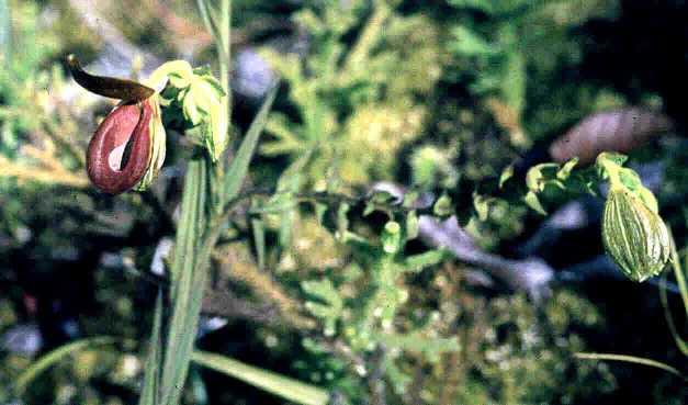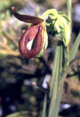 Found in Venezuela in cloud forests in sandy soil amongst rocks and fairly open scrubby trees on steep slopes at elevations of 800 to 1800 meters as a large sized, hot to cool growing terrestrial orchid with an elongated, slender stem carrying lanceolate-linear, plicate, acute leaves that blooms on a terminal, short to 10" [to 25 cm] long, successively few flowered inflorescence that are very short lived and have inflated floral bracts.