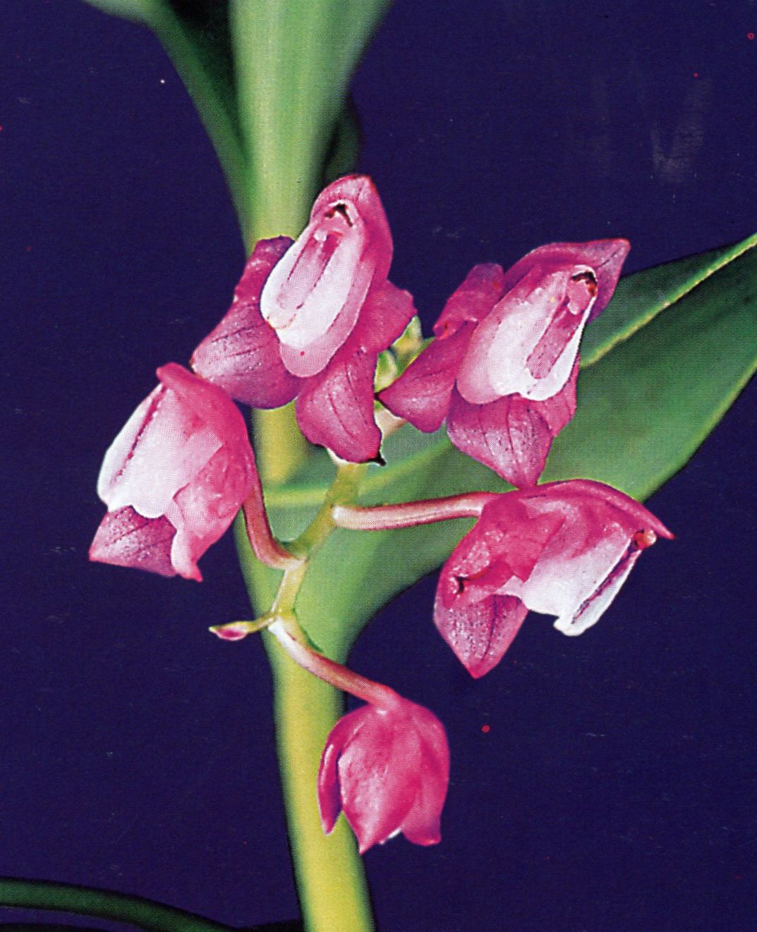Found in Colombia and Venezuela at elevations of 2700 to 3200 meters as a small to medium sized, cold growing terrestrial with an erect stem carrying erect-patent, elliptic-lanceolate, acuminate, plicate, 5 nerved leaves that blooms on an axillary, compressed, ancipitous, short, racemose, 6 to 12 flowered inflorescence with erect-patent, lanceolate, acute floral bracts