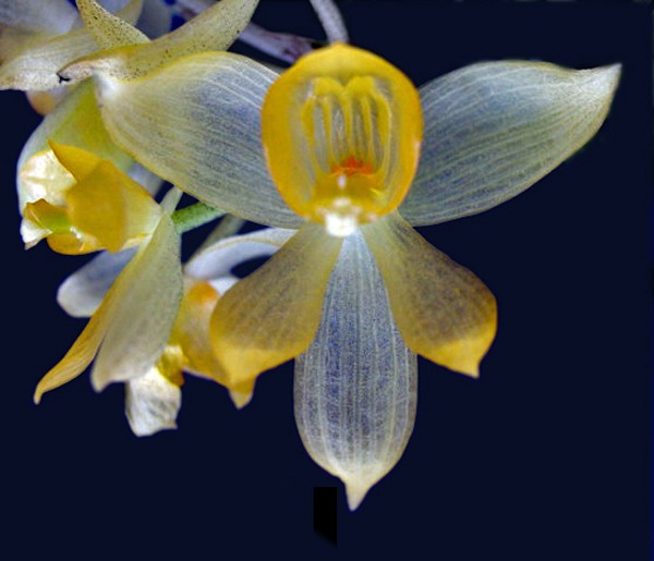 Found as a medium sized, hot to warm growing epiphyte in Colombia and Ecuador in lower wet montane forests at elevations of 500 to 1500 meters with pyriform, ribbed pseudobulbs enveloped basally by several dry sheaths and carrying a thin, plicate, elliptical, acute leaf that narrows towards the bnase into an elongate petiole that blooms in the winter through summer on a lateral to pendant, short to 2" [5 cm] long, few to several [3 to 15] flowered inflorescence arising on a mature pseudobulb and surrounded by loose, scarious bracts.