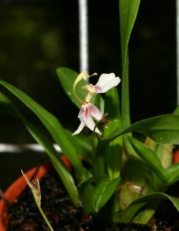 Found in Caldas State, Colombia at elevations of 1000 to 1800 meters as a miniature sized, warm to cool growing epiphytewith narrowly egg-shaped pseudobulbs partially enveloped by several disitchous leafy sheaths and carrying a single, apical,inear, sharply pointed leaf that can bloom at any time of the year on an axillary, 2.8" [7 cm] long, several flowered inflorescence that arises on a newly matured pseudobulb qith well spaced flowers.